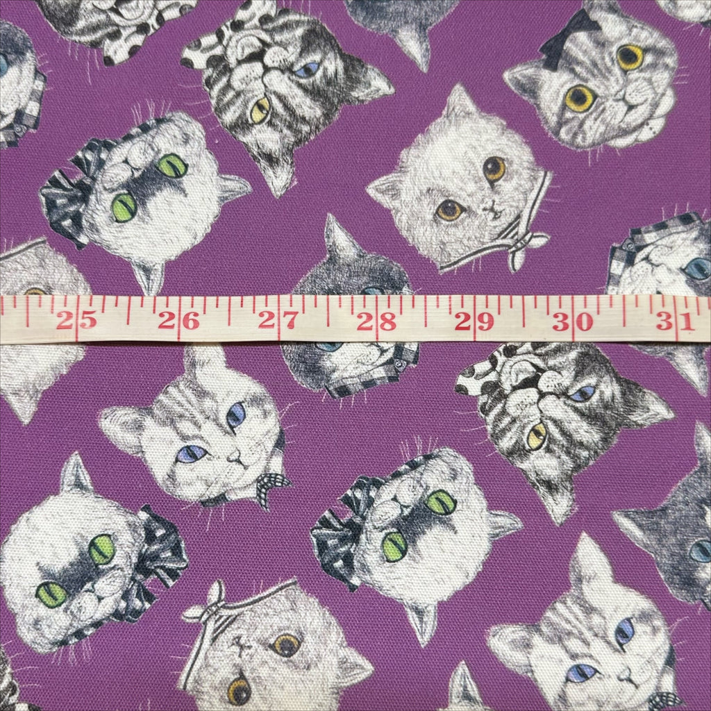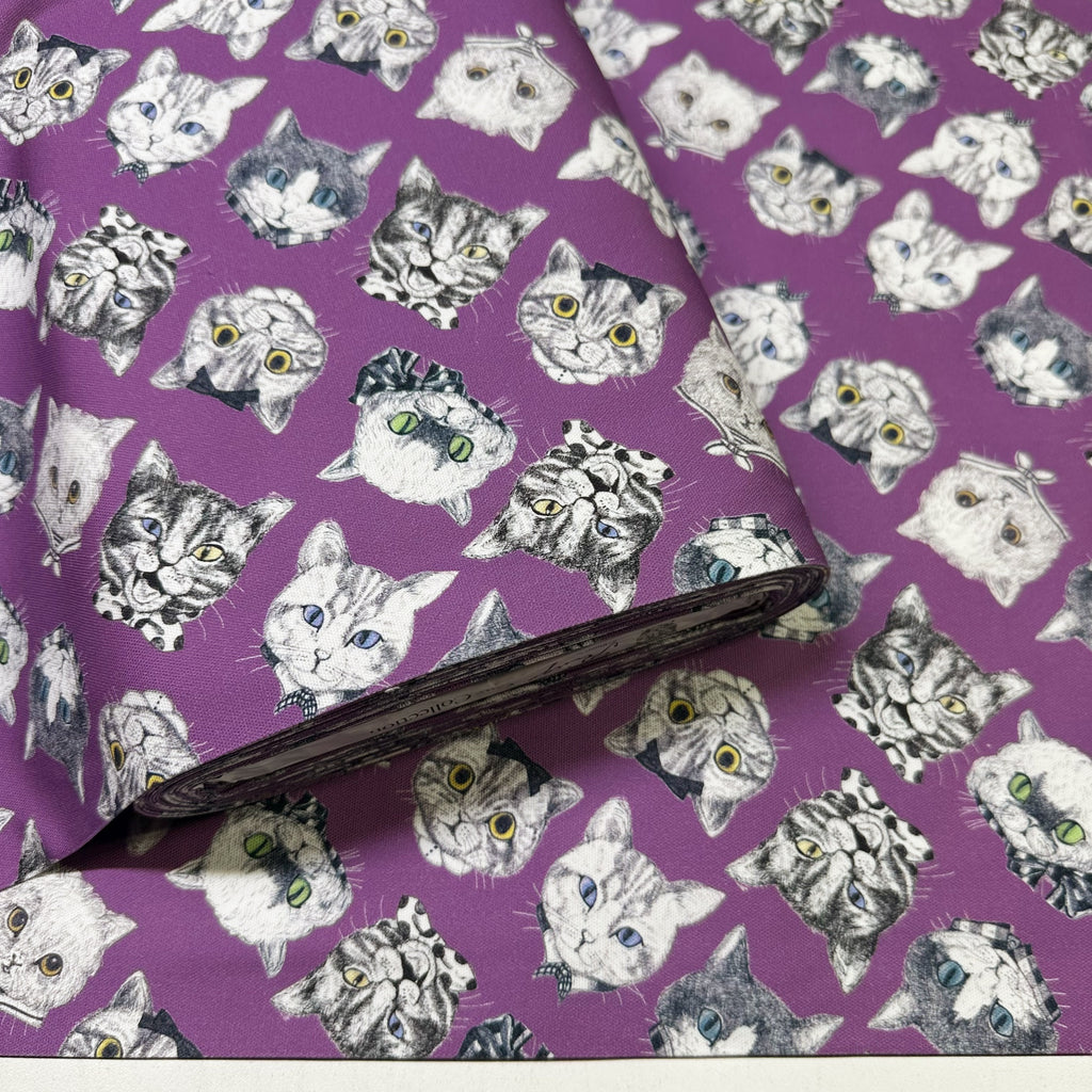 1 FQ Cat Faces Cotton Oxford Fabric in Purple by Illustrator Ringo, Imported from Japan