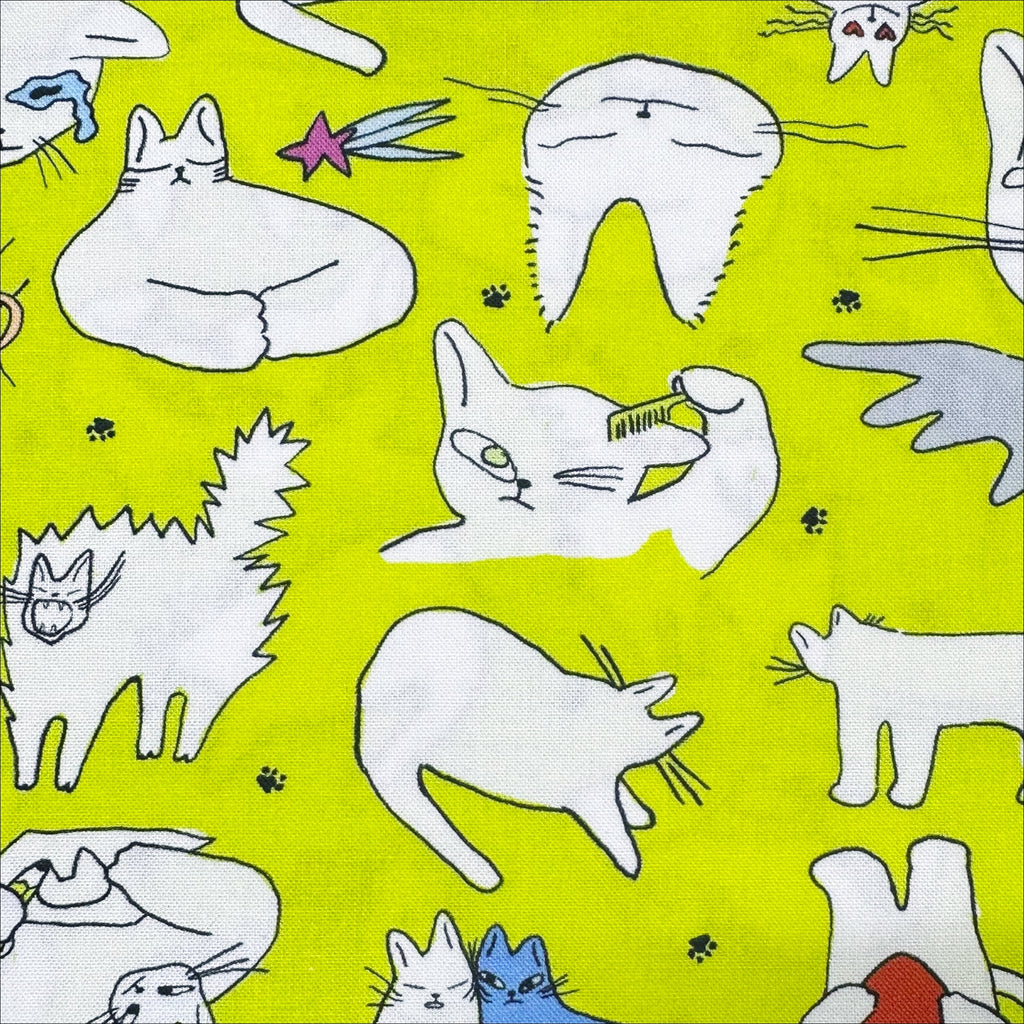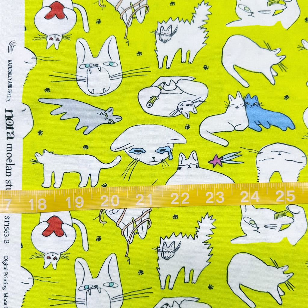 1 FQ Doodle Cat Cotton Fabric by Nora, Imported from Japan