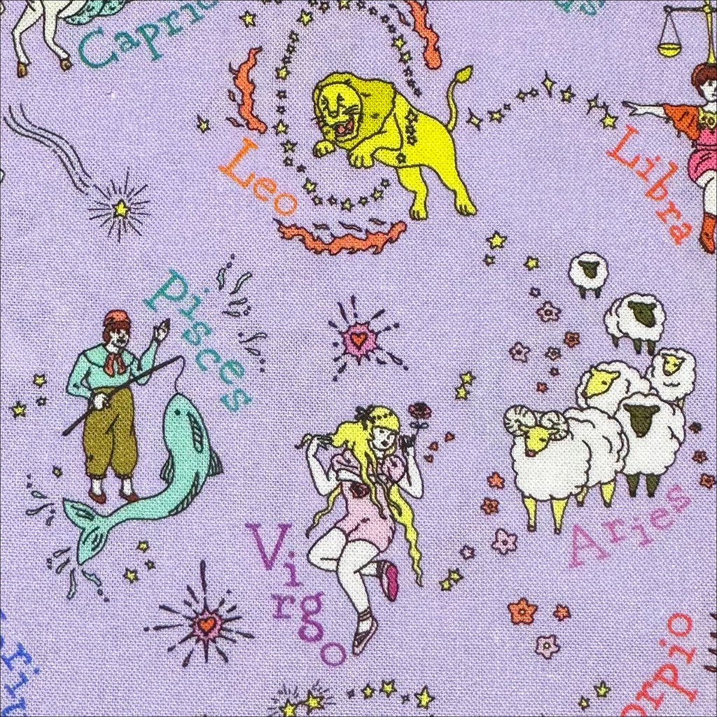 1 FQ My Star Sign Cotton Fabric in Purple by Nora, Imported from Japan