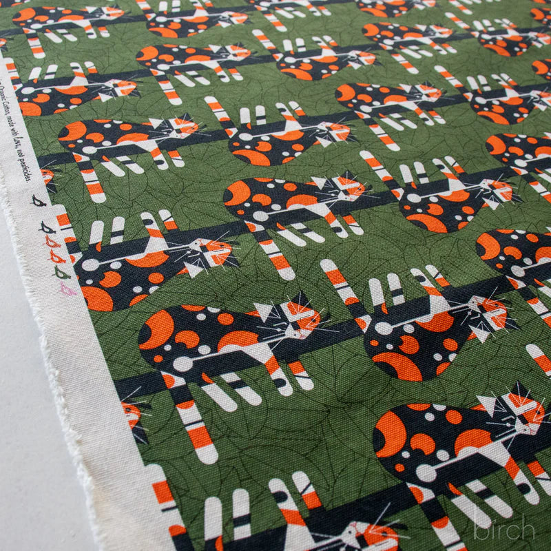 Limp on a Limb Dark Green Canvas Organic Cotton Fabric-Charley Harper for Birch Fabrics