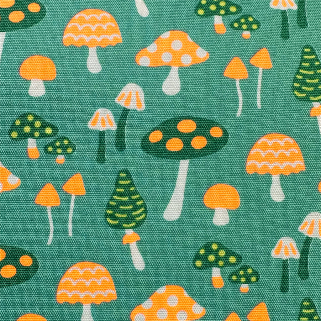 Omushi Oxford fabric features a playful retro pop mushroom print; imported from Japan.