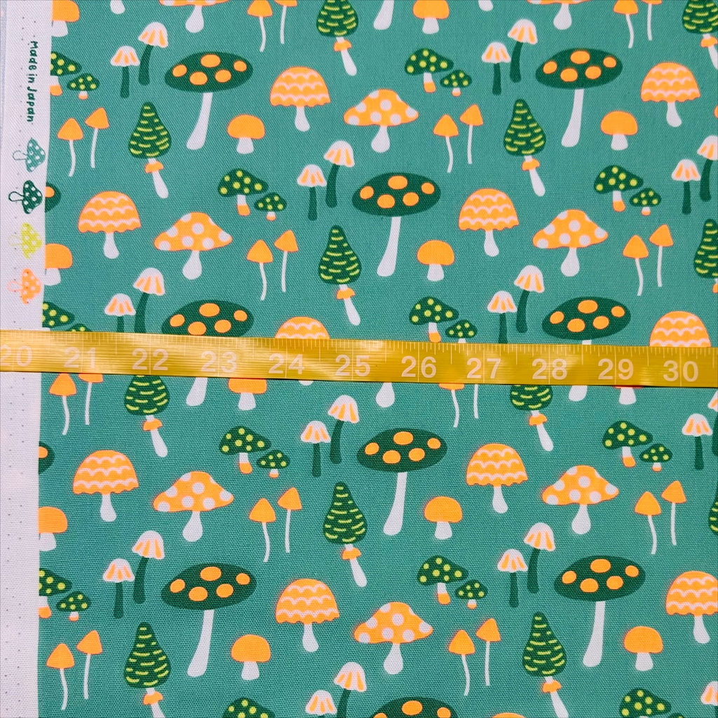 Omushi Mushrooms Cotton Oxford Fabric – Neon Orange & Green, Japanese Import