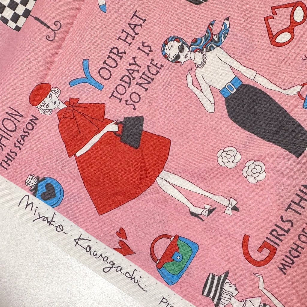Retro Fashionistas Cotton Fabric in Pink – Miyako Kawaguchi for Kei Fabric, Japan