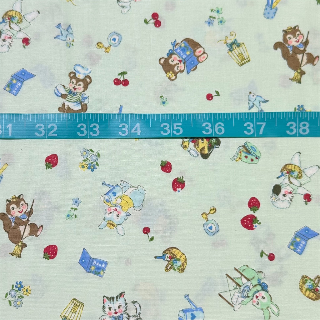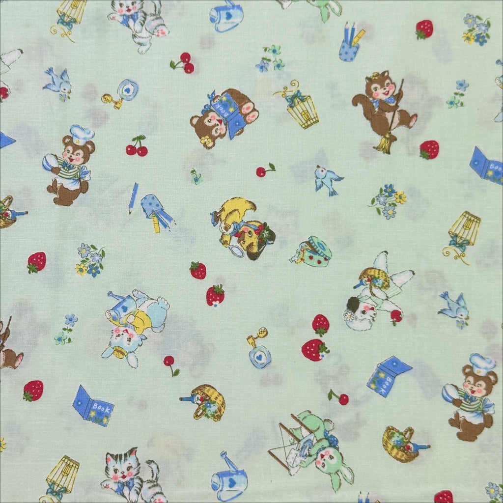 Tiny Animals Cotton Fabric in Mint – Atsuko Matsuyama Yuwa 30’s Collection